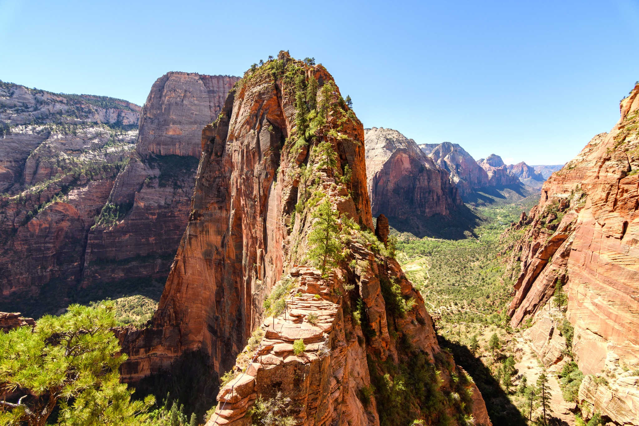 Voor wie houdt van een uitdaging is er de beroemde hike naar Angels Landing. Deze route is niet alleen pittig, maar ook spectaculair. Na een stevige klim en een stuk over een smalle richel met kettingen word je beloond met een panoramisch uitzicht over de canyon. Let op: je hebt een permit nodig dus vooraf reserveren is essentieel.