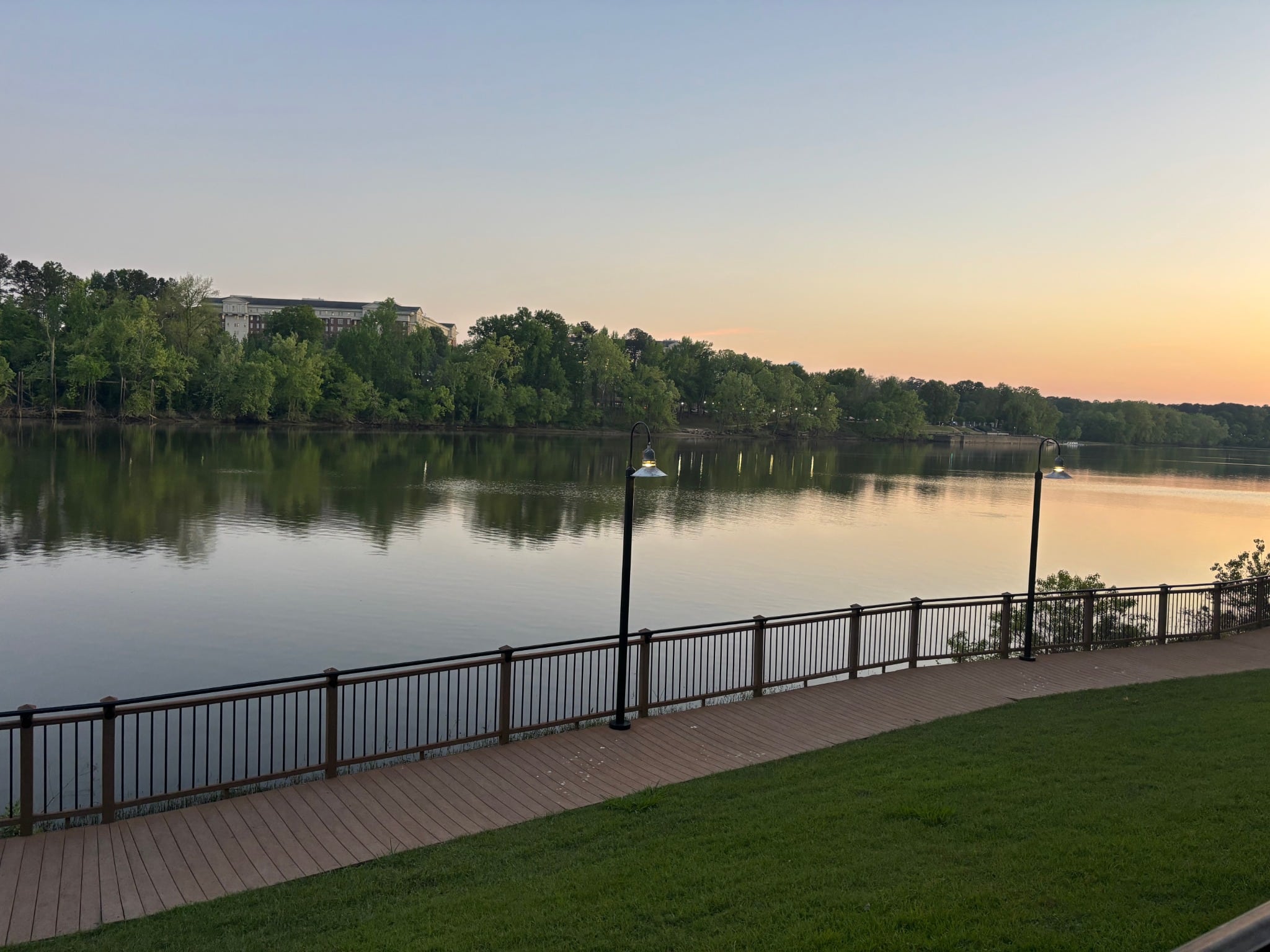 Tuscaloosa ligt aan de Black Warrior River, een langzaam stromende rivier die niet alleen sfeer geeft aan de stad, maar ook het uitgangspunt is voor veel buitenactiviteiten. Langs de rivier ligt de Riverwalk, een populair wandel- en fietspad waar je met wat geluk reigers, schildpadden en soms zelfs een visarend ziet. Vroeg in de ochtend is het hier op z’n mooist, met zachte nevel boven het water en de geur van nat gras in het park.