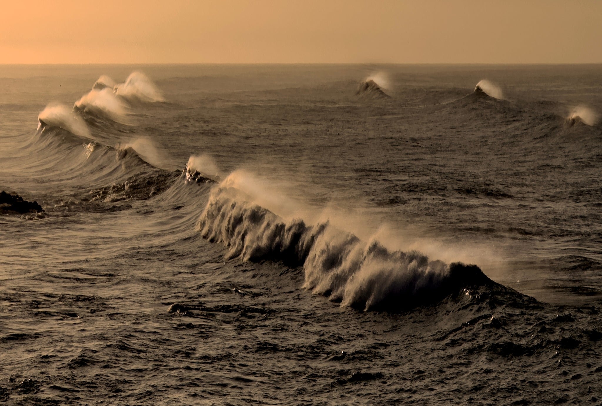 De oceaan zelf is hier ook levendig. In het seizoen (december tot april) trekken walvissen vlak langs de kustlijn richting Baja California. Met een beetje geluk zie je de fonteinen al vanaf de kustweg. Dolfijnen zijn het hele jaar door te zien, meestal in groepen die meebewegen met de stroming.