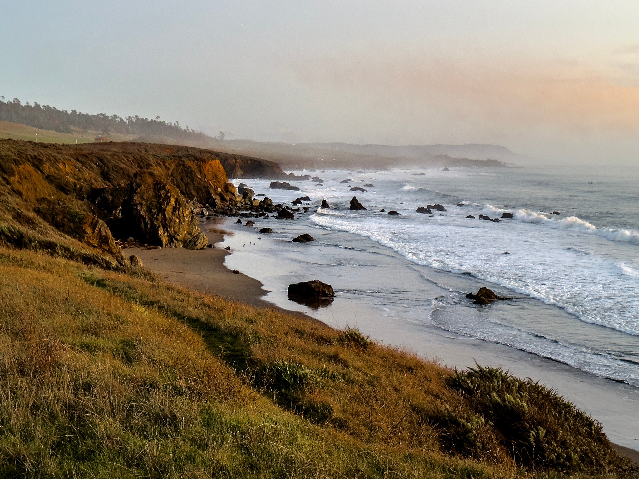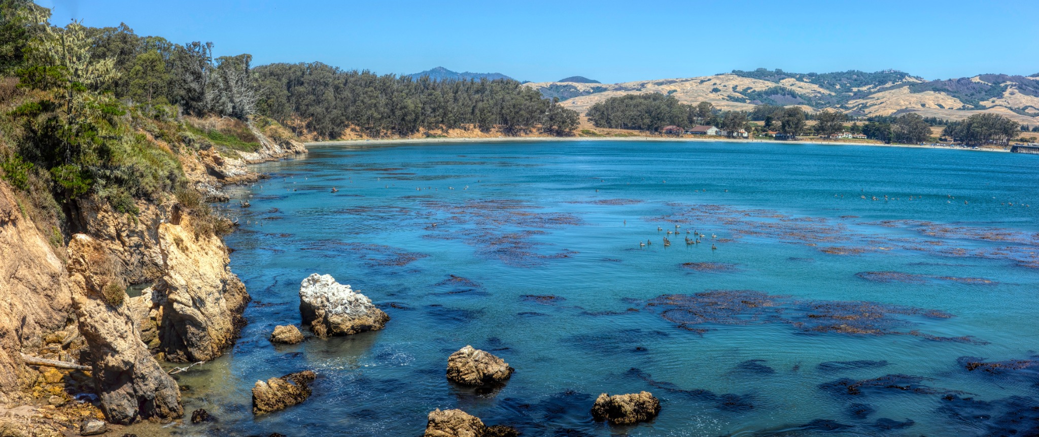 De natuur rondom San Simeon is ruig en puur. De kustlijn hier is niet geschikt om te zwemmen, want te koud, te rotsachtig en te wild, maar juist dat maakt het wel indrukwekkend. De combinatie van kliffen, uitgestrekte grasvlaktes en mistige zeelucht creëert een landschap dat soms doet denken aan Noord-Engeland, maar dan met condors en walvissen.