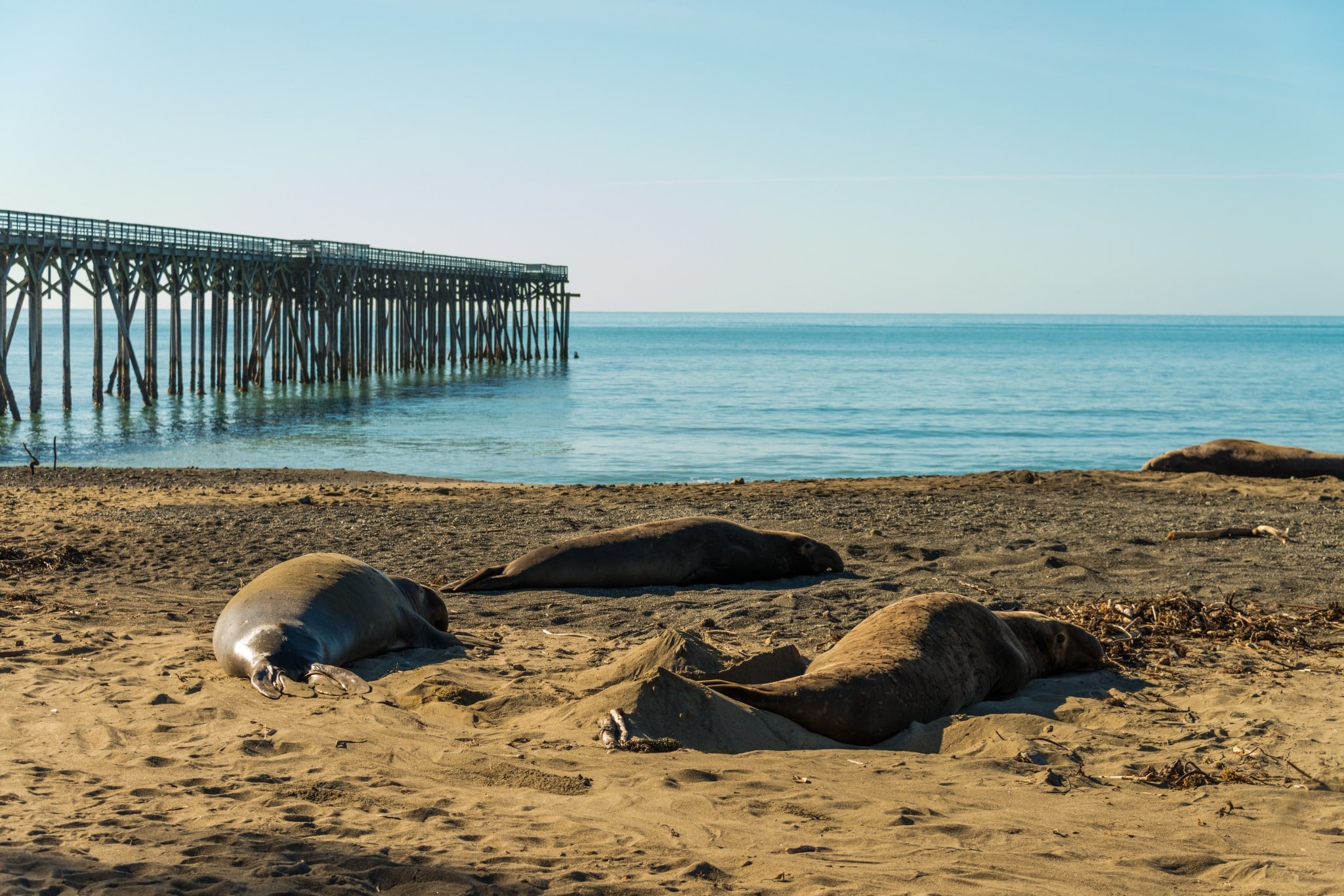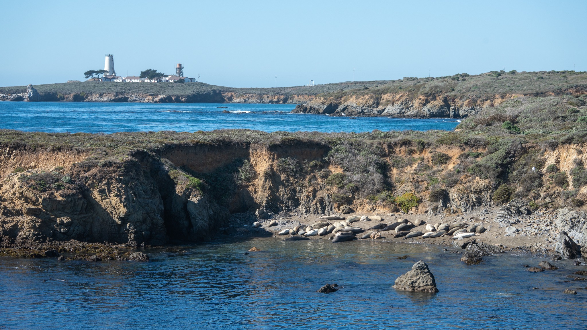 Het bekendste natuurmoment beleef je bij de elephant seal rookery. In de wintermaanden barst het strand van de reusachtige zeezoogdieren. Mannetjes vechten luidruchtig om hun plek, terwijl vrouwtjes hun jongen zogen op het zand. Maar ook buiten het hoogseizoen is hier van alles te zien. In het voorjaar zijn er jonge zeeolifanten die hun eerste zwemlessen krijgen in de branding, en in de herfst komen de mannetjes alvast terug om terrein te claimen.
