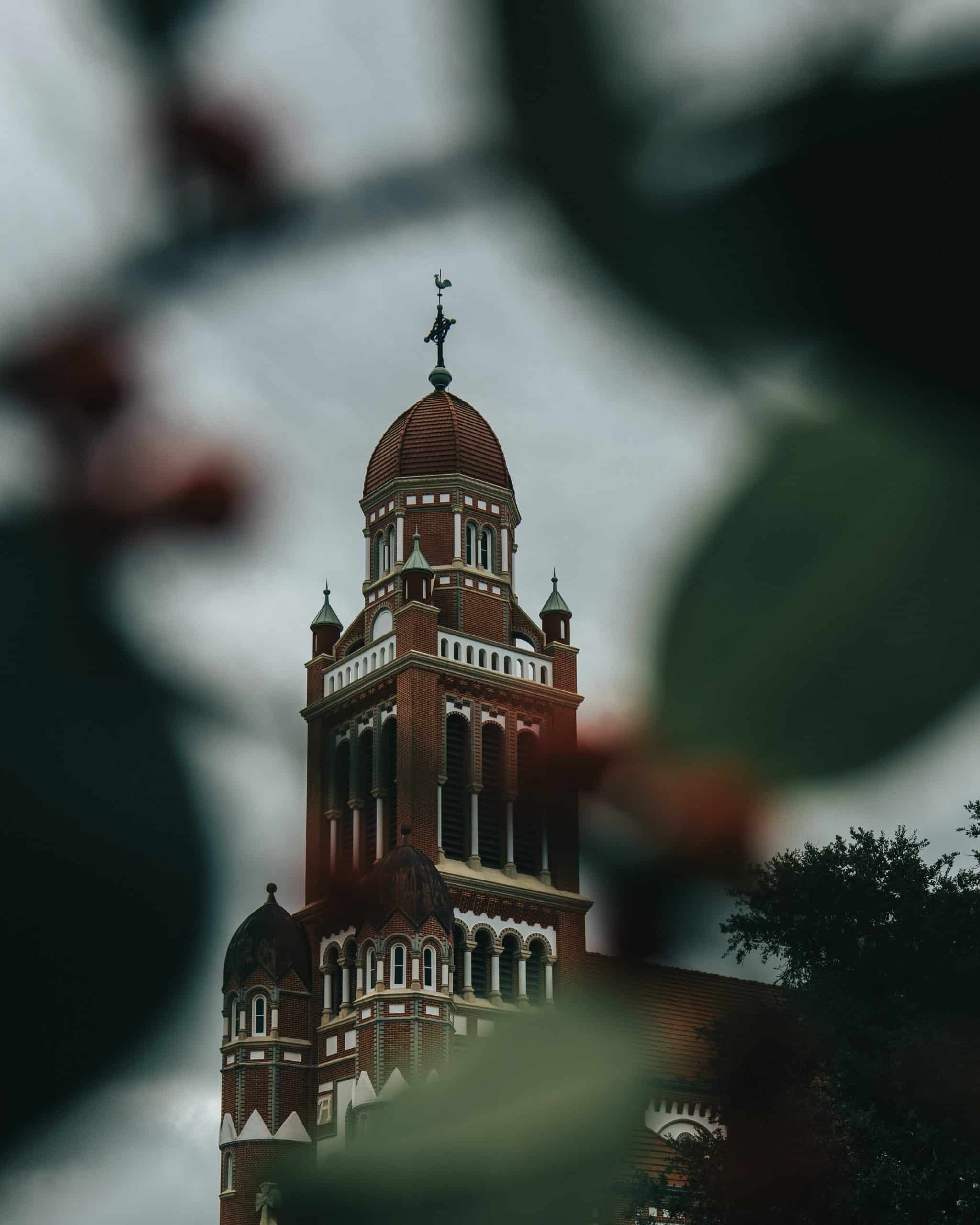 Een statige, dieprode bakstenen kathedraal met een indrukwekkend interieur én een gigantische, eeuwenoude eik in de voortuin. Dit is zo’n plek waar je even stil wordt. En dat zegt wat, in een stad waar muziek de boventoon voert.