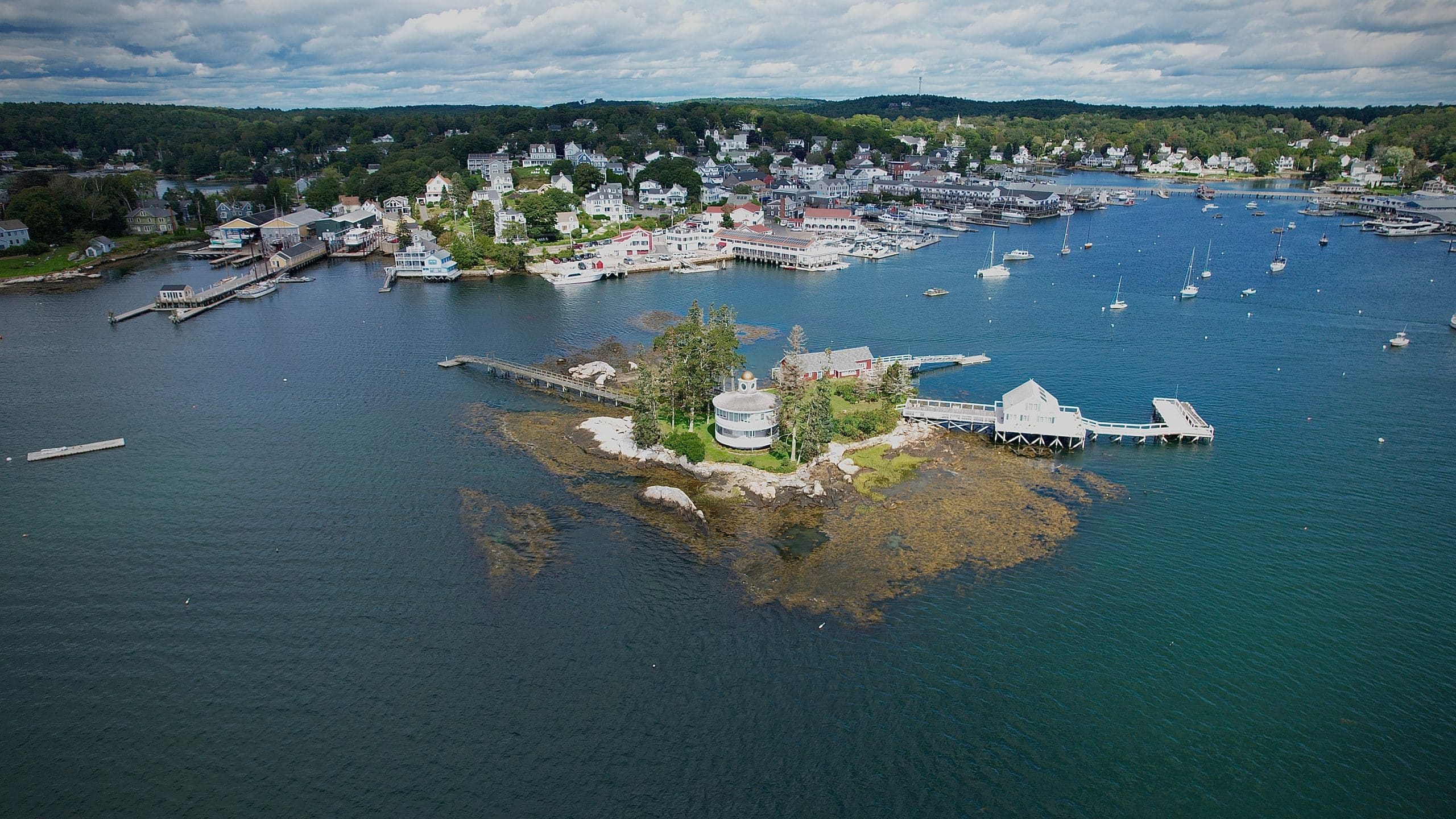 Boothbay Harbor ligt aan de zuidkust van de staat Maine, grofweg tussen Portland en Rockland in, op zo’n drie uur rijden van Boston. Het plaatsje ligt aan een natuurlijke, beschutte inham aan de Atlantische Oceaan en is omgeven door kleine eilandjes, rotsige baaien en bossen. Je rijdt via een smalle landtong het dorp binnen. Het centrum ligt laag, pal aan het water, en strekt zich uit naar meerdere kleine schiereilandjes.