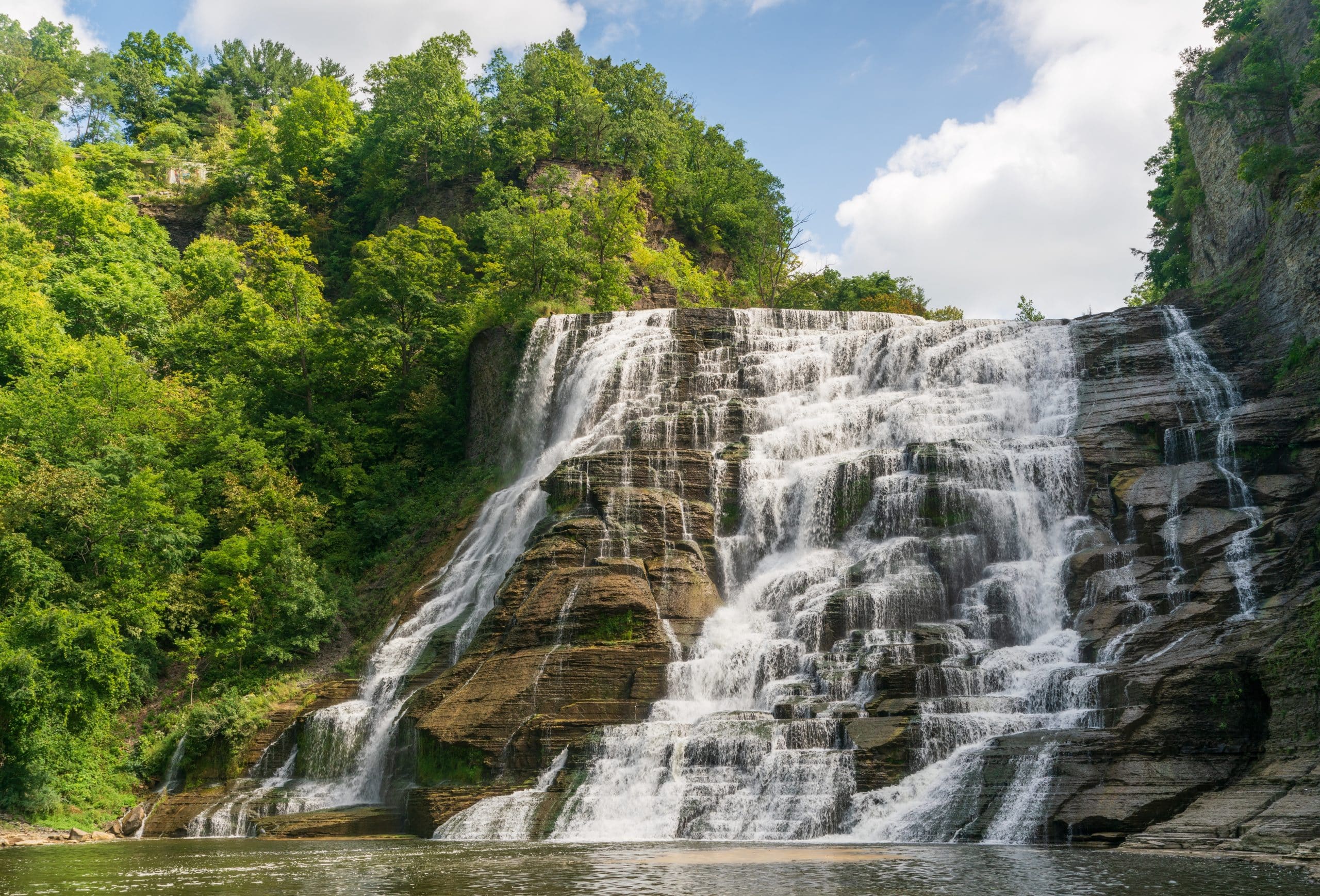 Het bekendste natuurgebied is Robert H. Treman State Park. Hier wandel je door een smalle kloof langs stenen trappen, bruggetjes en meerdere watervallen. Het hoogtepunt is Lucifer Falls, een krachtige waterval die ongeveer 35 meter naar beneden stort. In de zomer kun je zwemmen in een natuurlijke zwempoel aan het begin van het park.