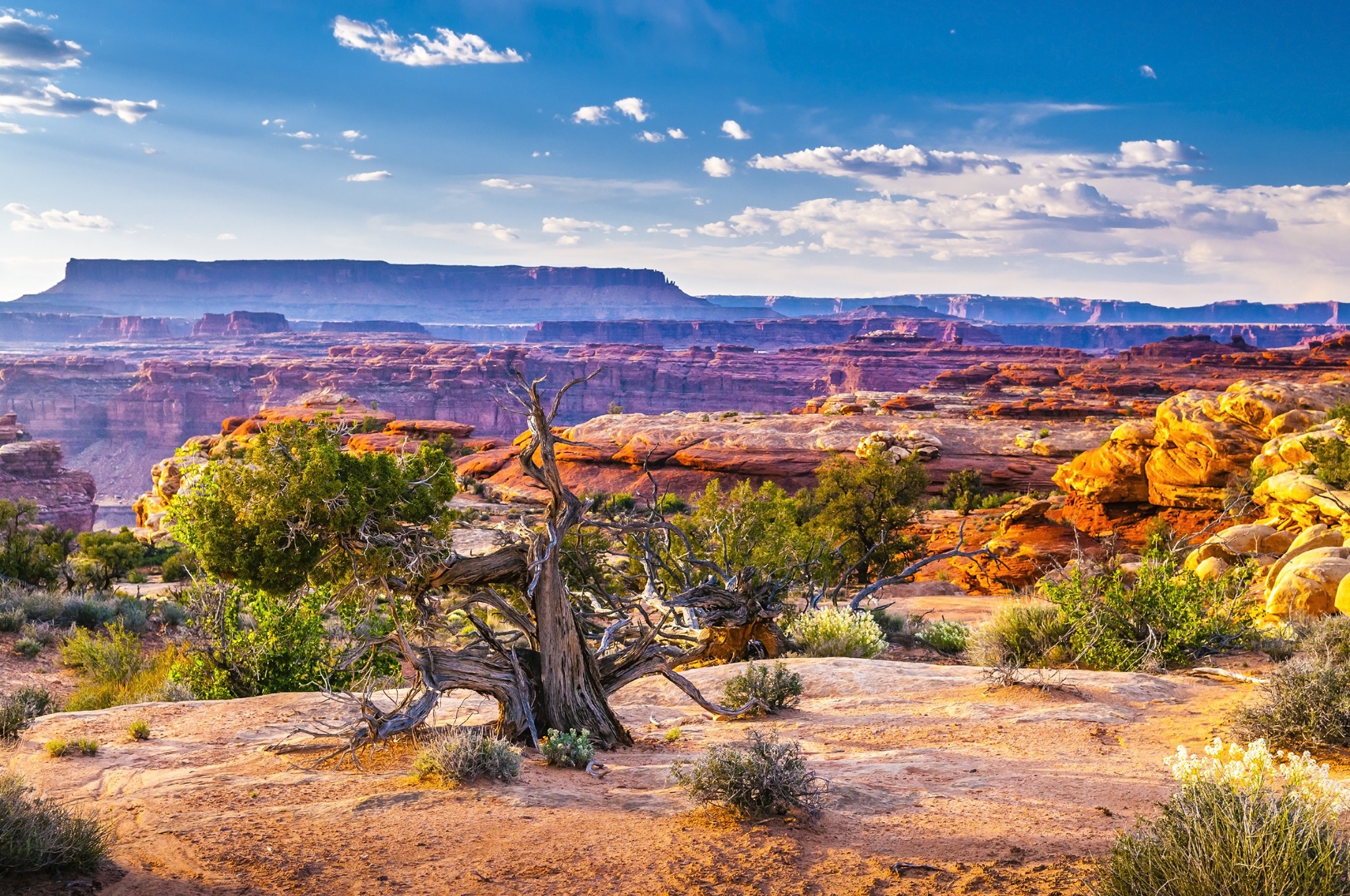 De zomermaanden (juli en augustus) zijn heet, vooral in zuid-Utah. Denk aan dagtemperaturen rond de 35 °C, soms uitschieters richting de 40 °C in de lagere delen zoals Moab of Zion. In hoger gelegen gebieden, zoals Bryce Canyon (2700 meter hoog), blijft het koeler – gemiddeld rond de 25 °C. Voor wie vroeg opstaat en wandelingen slim plant, is ook de zomer goed te doen.